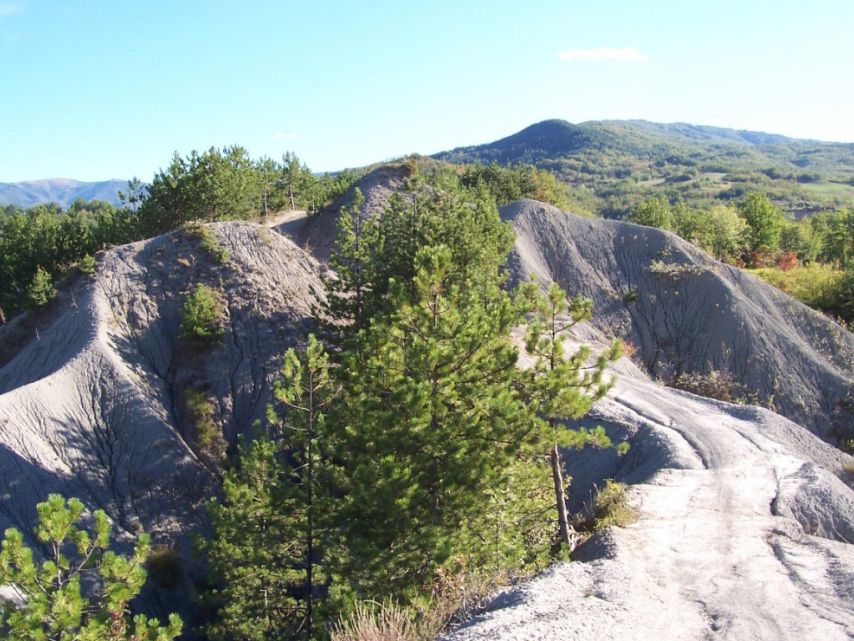 La regione collinare intorno a Squaneto, dove le Alpi si fondono con gli Appennini, è adornata dai caratteristici “calanchi”. Questi pendii ondulati, modellati dall’erosione, sono formati da un mix di sabbia argillosa, su cui la vegetazione sembra fluttuare qua e là.