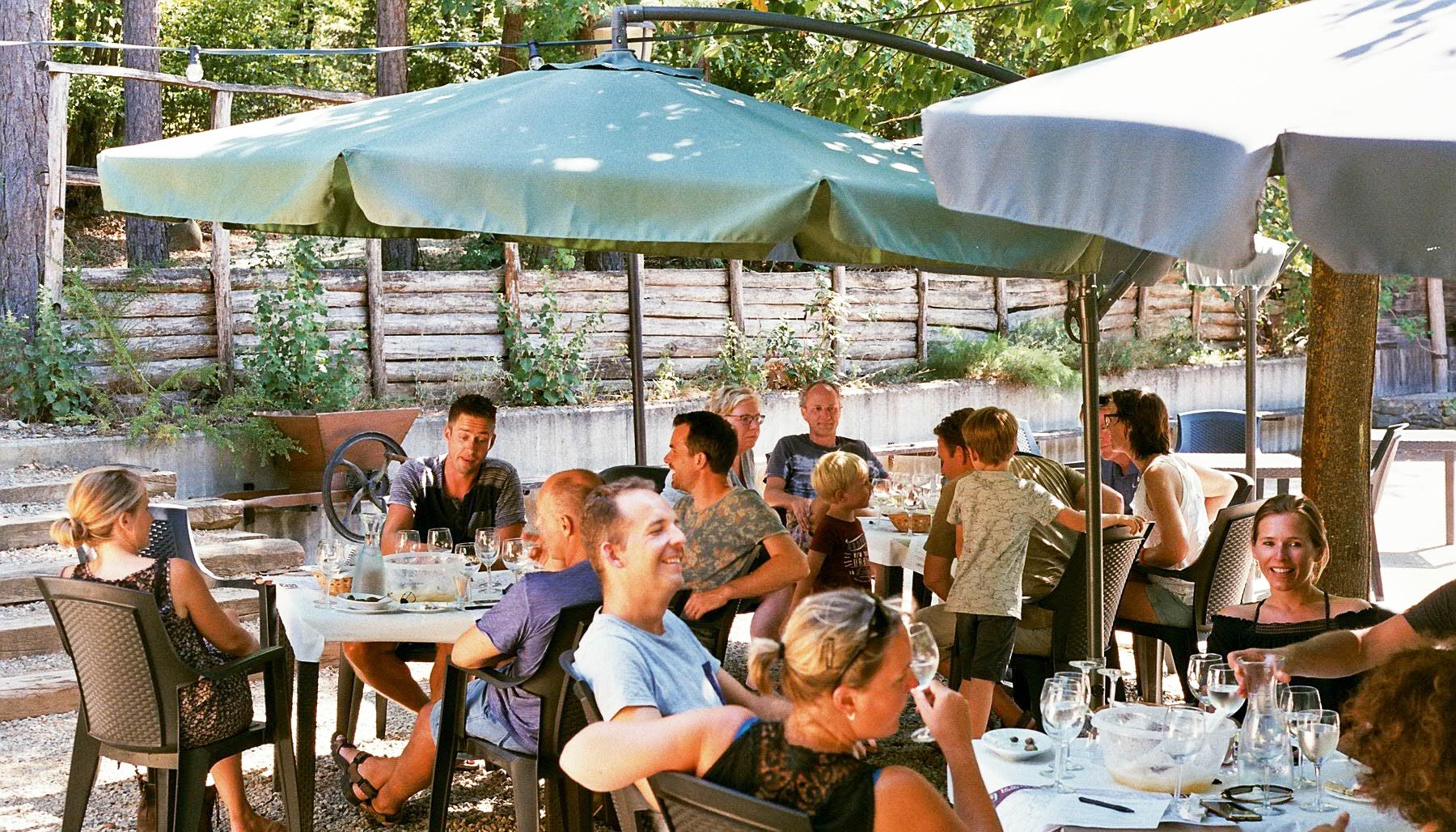 Bij mooi weer worden maaltijden, drankjes en ambachtelijk schepijs uiteraard ook buiten onder de geurende lindebomen op ons terras geserveerd.